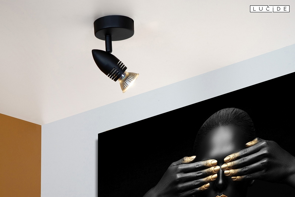 Ceiling spotlight CARO, Ø 9 cm, 1xGU10, black