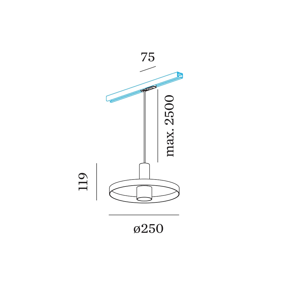 Included is a 1-phase rail adapter that allows for easy and quick installation. The pendant light can therefore be easily attached to existing 1-phase rail systems without the need for additional accessories. The adapter has a length of 7.5 cm and ensures a stable connection to the power supply with an operating voltage of 100-240 volts.