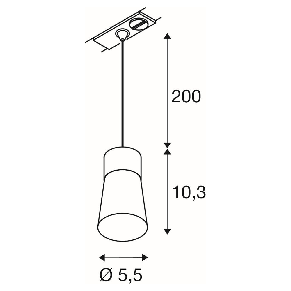 The track system bound mounting method allows for easy installation on the ceiling. Weighing only 0.16kg and measuring Ø/ H: 5.5/ 10.3 cm, the pendant light PURI 2.0 CONE is compact and discreet, yet fits perfectly in any room.