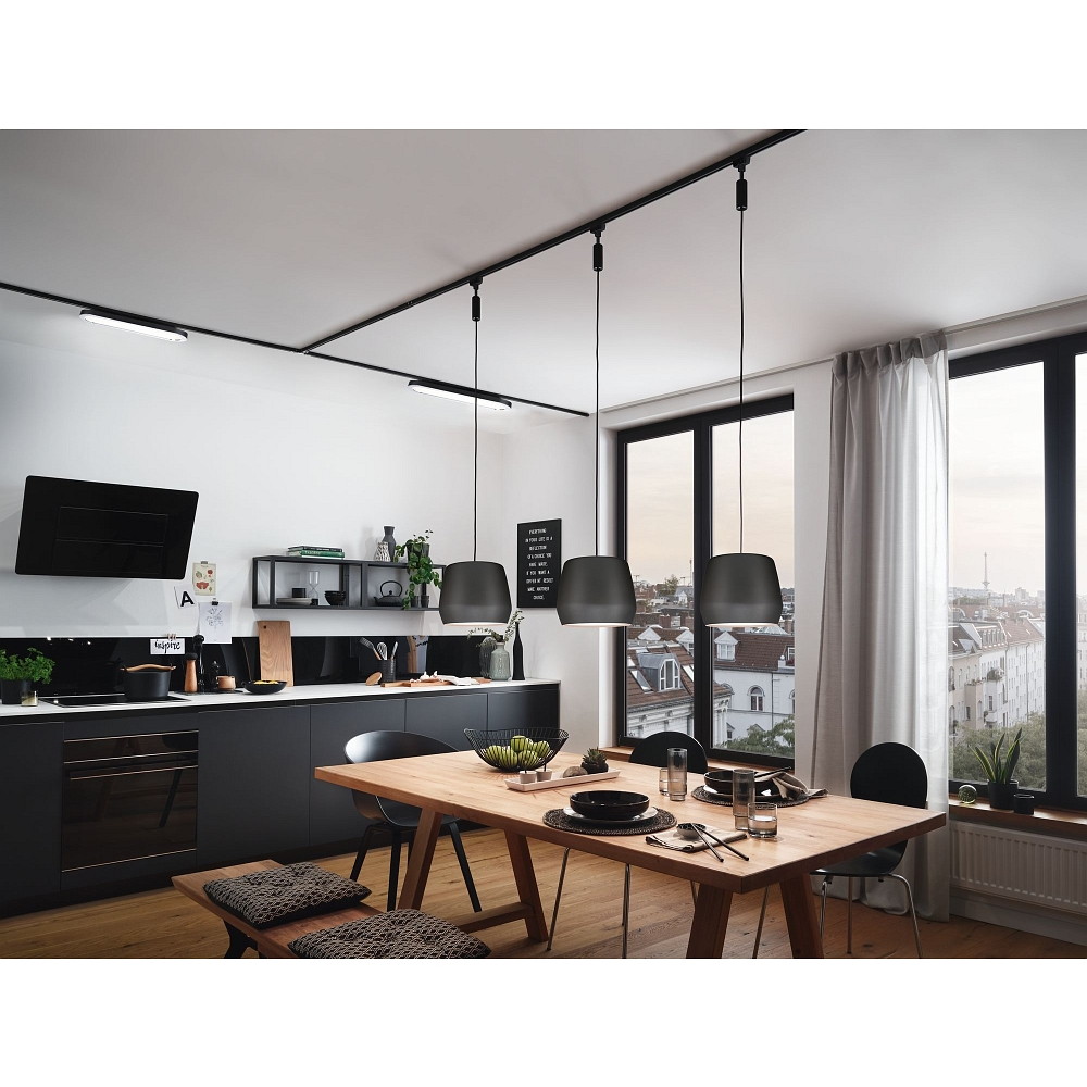 1-Phasen LED Flächenleuchte URAIL PANEL, oval, 38 x 11cm, 230V, 8W 2700K 480lm, Schwarz matt / Chrom