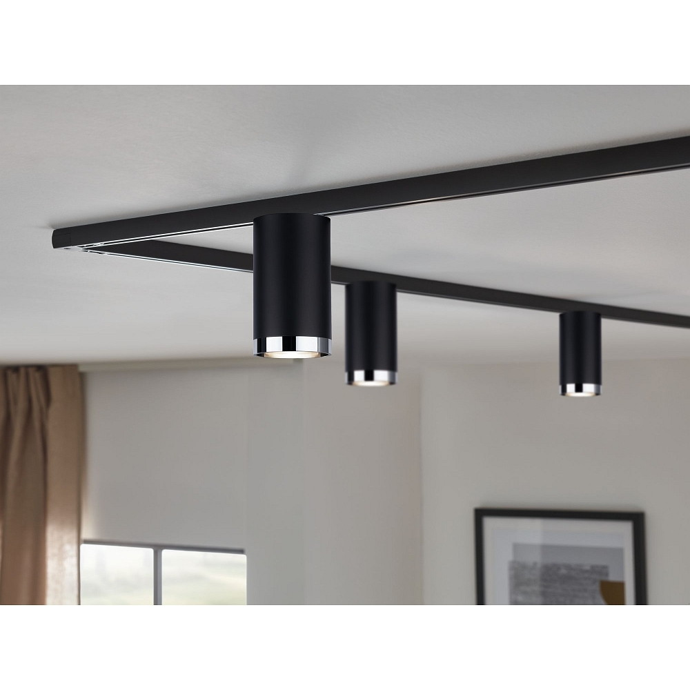 1-Phasen Schienenspot URAIL TUBE, Ø 6.5cm / H 11.2cm, 230V, GU10 max.10W, Schwarz matt / Chrom