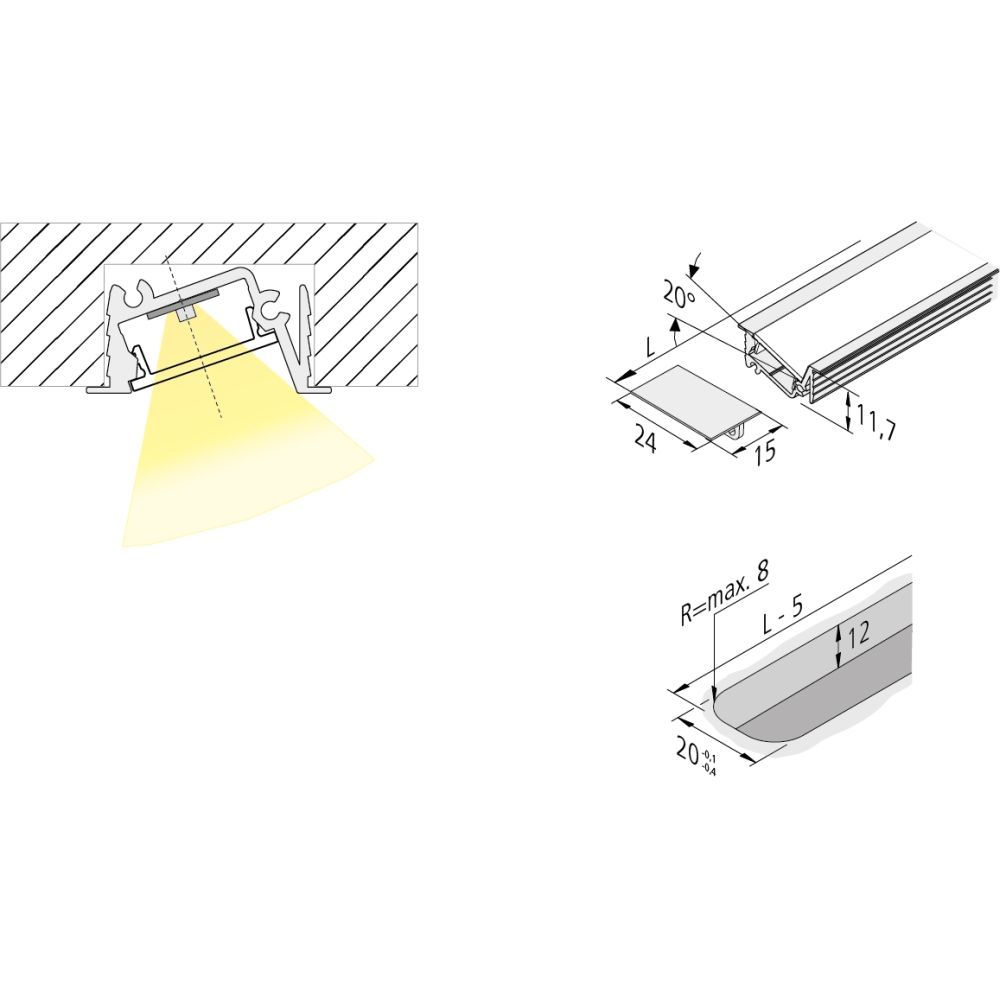 2pc. set of end cap for LED milling mount profile I, 24mm, with fastening screws, anodised alu