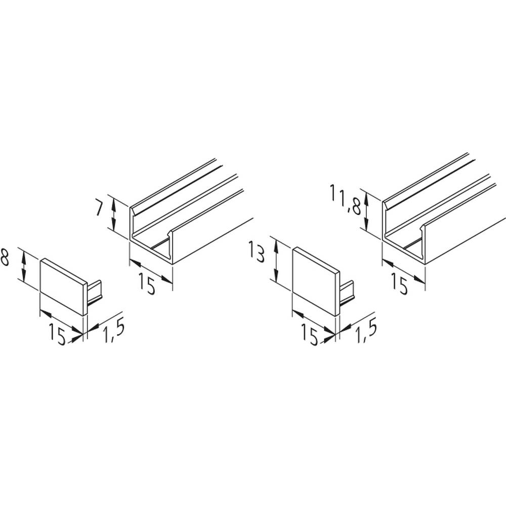 The size of the end caps is L/W/H: 0.15/1.5/0.8 cm, making them ideal for 15/8mm LED surface-mounted profiles. The precise dimensions ensure that the end caps fit perfectly on your profile and provide a clean finish.