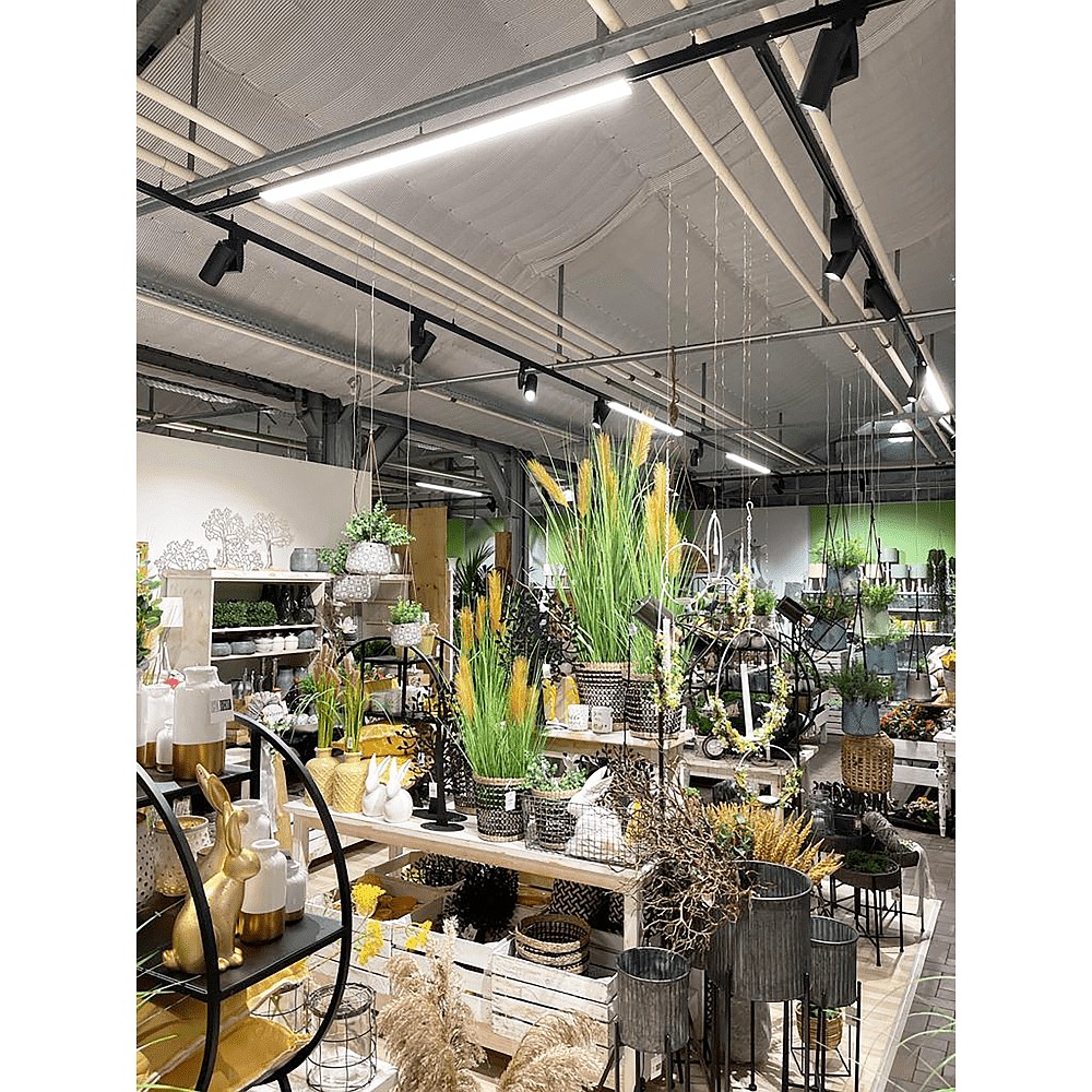 The LED 3-phase luminaire LINEAR PRO 60 stands out for its neutral white light output and excellent color rendering. It is ideal for product presentation on retail shelf aisles and can be combined with 3-phase spotlights to create additional accent lighting. Other luminaires from the LINEAR PRO series are also available, offering various options in terms of housing colors, lengths, and light colors.