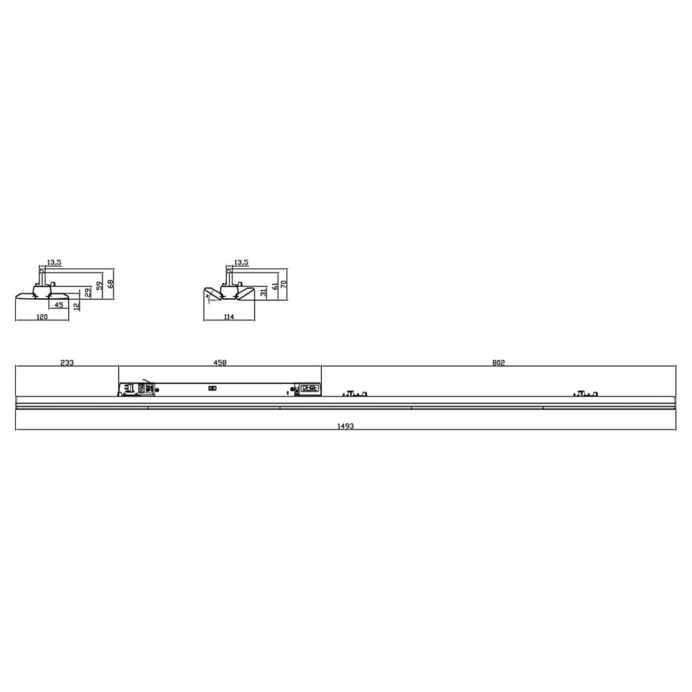 The LED 3-phase luminaire LINEAR PRO FOLD has an operating voltage of 220-240V~ and a power consumption of 50W. With a luminous flux of 7250lm and a warm white light color, it provides pleasant lighting. The color rendering index of 90Ra ensures high color rendering quality. The luminaire is mounted on a rail system and connected to the mains via a 3-phase adapter.