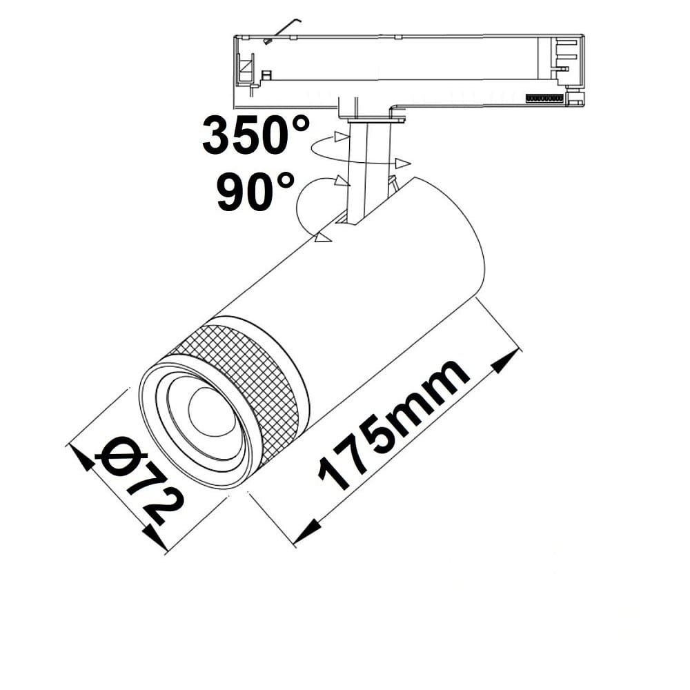 The track spotlight is connected to the power track system via a screw clamp, making it easy to install. With its swiveling construction, the spotlight can be flexibly adjusted and is ideal for ceiling installation in various indoor spaces.