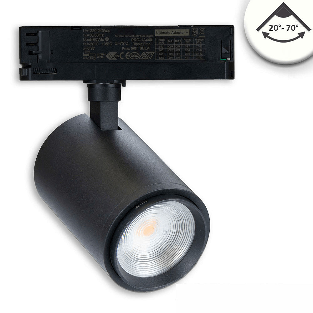 3-phase spot 42W - 20°-70° (DALI) rigid, DALI controllable, focusable IP20, black dimmable