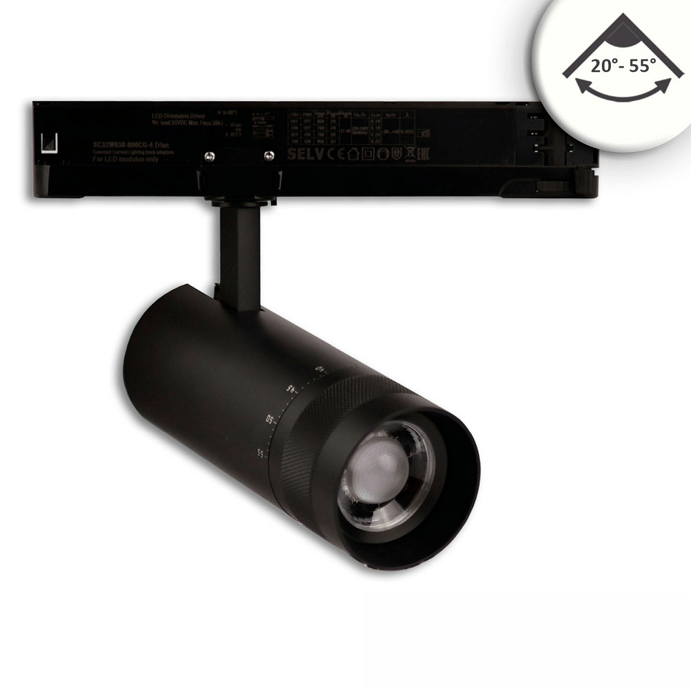 3-phase spot focusable IP20, black dimmable