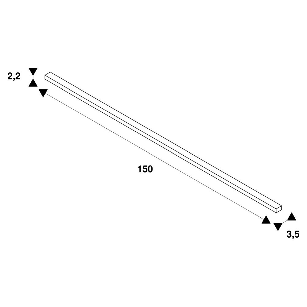 The size of the surface mount profile is L/W/H: 150/3.5/2.2 cm. This measurement allows for flexible adaptation to different room sizes. The product comes from the renowned brand SLV, known for high-quality lighting solutions.