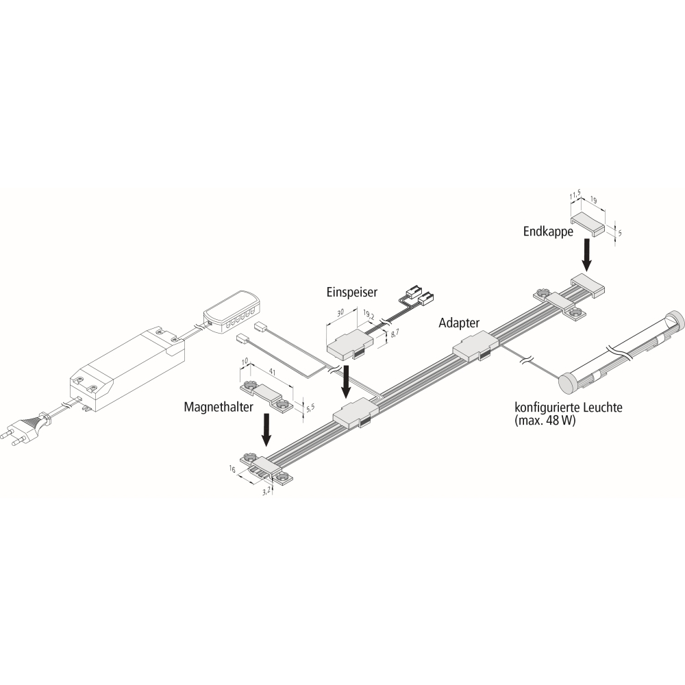 Accessory for 24V power track Flat Track - center position feed, 250cm lead, with 2x LED24-plug, black