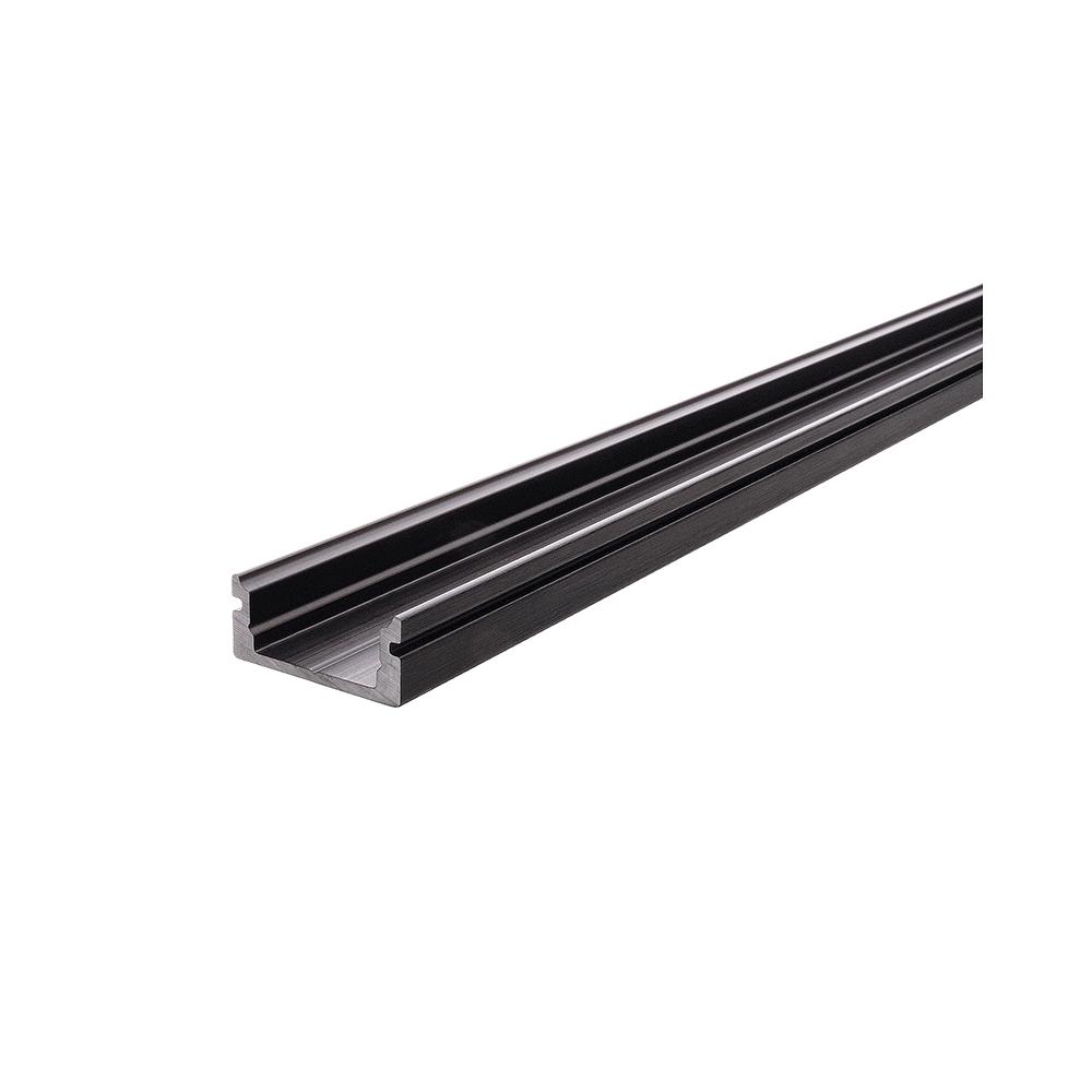 AU-01-10, flaches U-Profil für 10-11.3mm LED Strips, 200cm, matt-schwarz gebürstet
