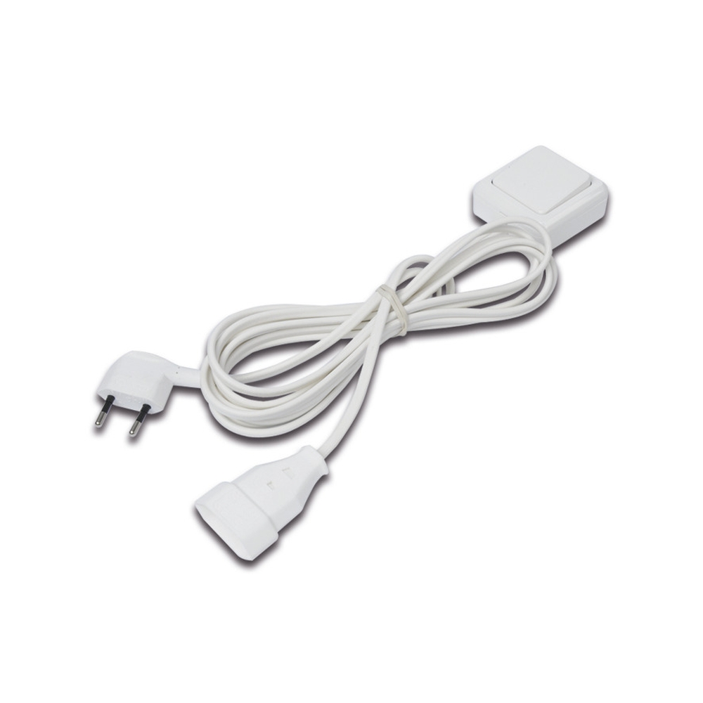 Aufbau-Schalter SAQ quadratisch 6 x 6cm, IP20, 220-240V, max. 2.5A, mit 200cm Eurostecker + 200cm Eurokupplung, weiß