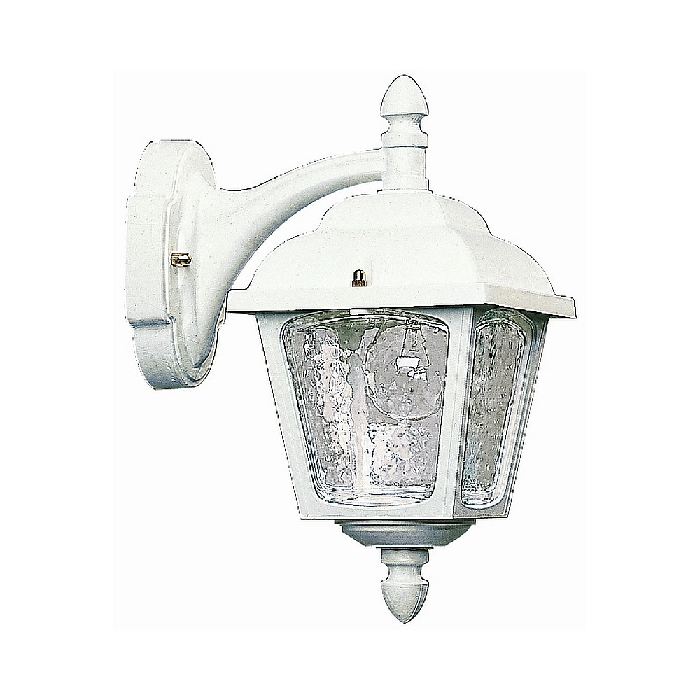 Außenwandleuchte Landhausstil Doppelkuppel eckig, Typ Nr. 1813, hängend an Wandarm, IP44, E27, Alu-Guss / klar, Weiß