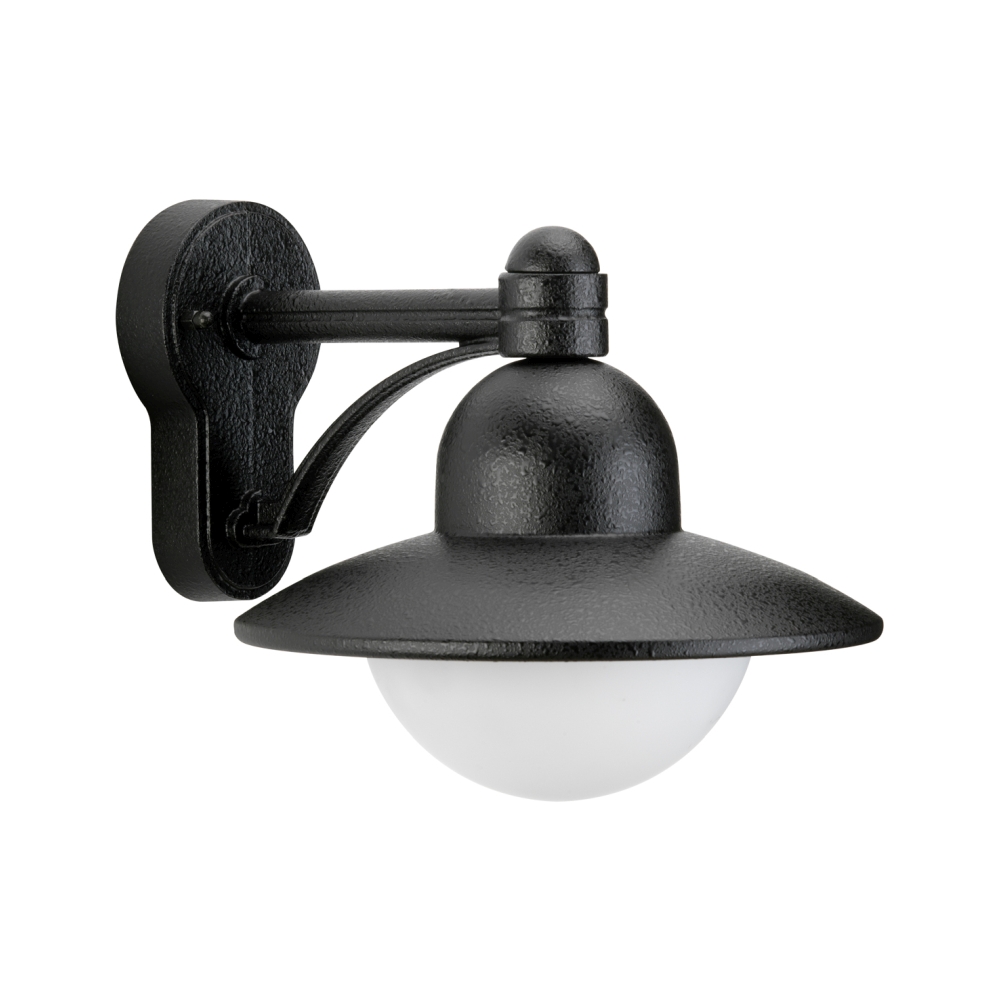 Außenwandleuchte Landhausstil Hutform Rund Typ Nr. 1850, IP44, E27 QA55 max. 57W, Alu-Guss / Opalglas, Schwarz matt