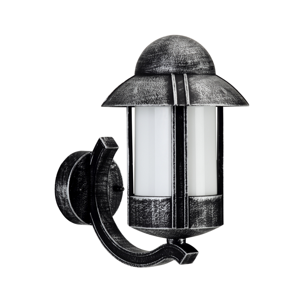 Außenwandleuchte Landhausstil Nachtwächter Typ Nr. 1840, stehend mit Arm, IP44, E27 QA55, Alu-Guss / Opal, Schwarz