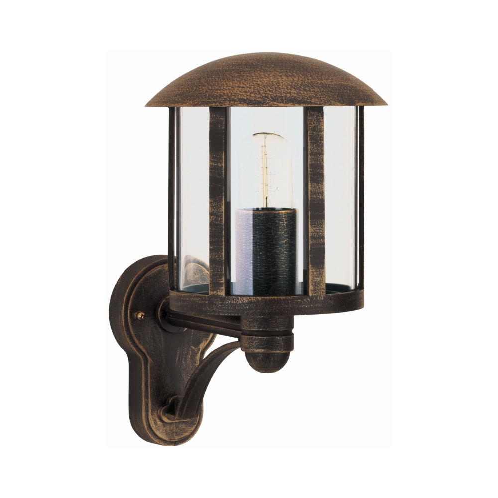 Außenwandleuchte Landhausstil Vintage Typ Nr. 1834, stehend mit Arm, IP23, E27 QA55 max. 57W, Alu-Guss / klar, braun