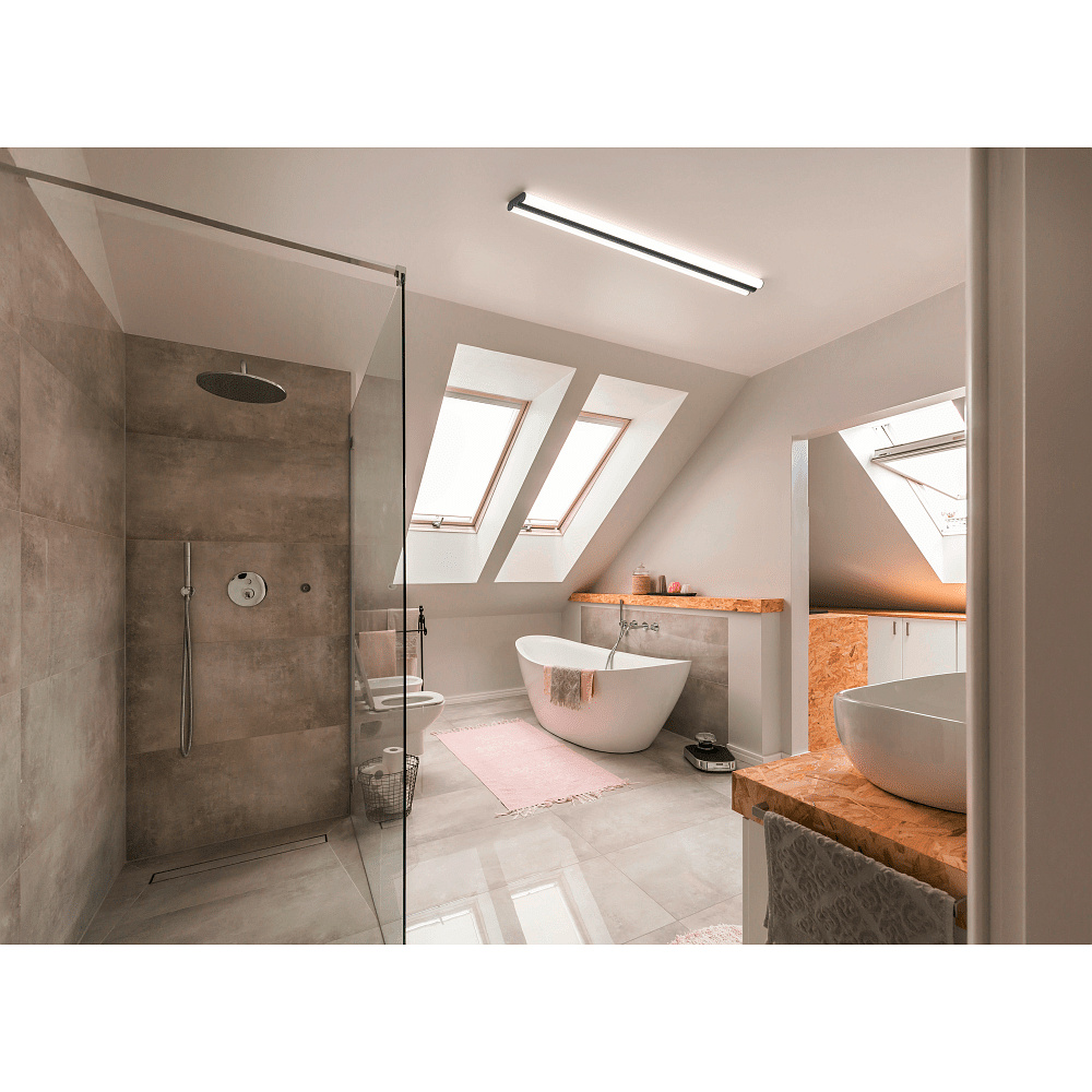 The LED wall/ceiling light LOOM features two integrated light sources that ensure even illumination. The dimensions of 120 x 9 x 3 cm allow for versatile use without taking up much space. Thanks to high-quality materials and thoughtful construction, the light is especially durable and easy to maintain. A quick and uncomplicated installation completes the overall package.