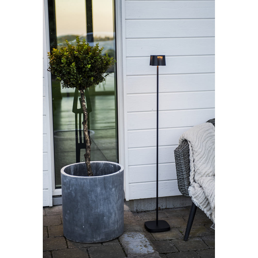 With an IP54 protection rating, the battery floor lamp is protected against moisture and dirt, making it perfect for outdoor use, such as on terraces or garden tables. With an aluminum housing, the lamp is also sturdy and durable, ensuring you will enjoy it for a long time.