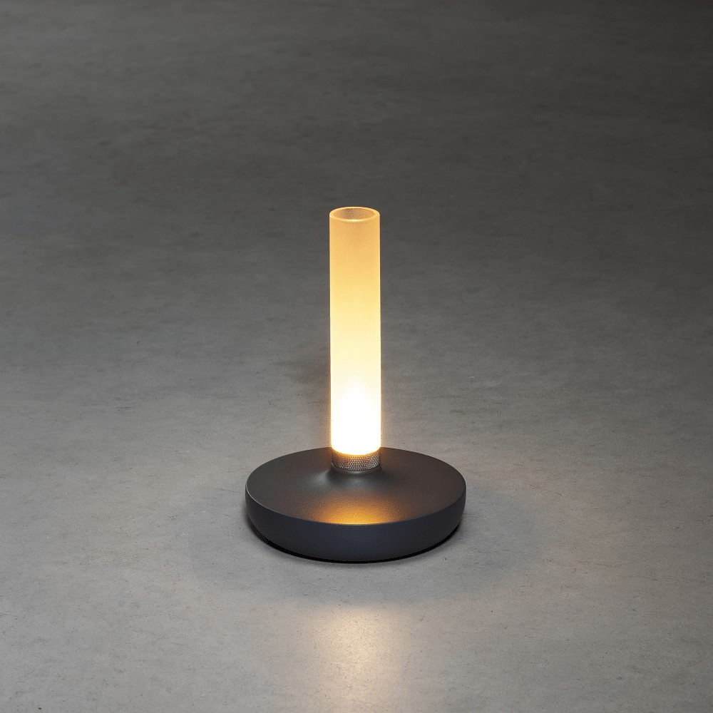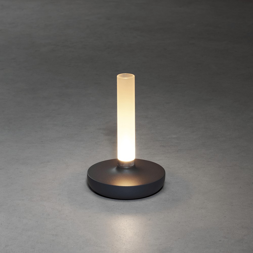 battery table lamp BIARRITZ IP54, dark grey dimmable
