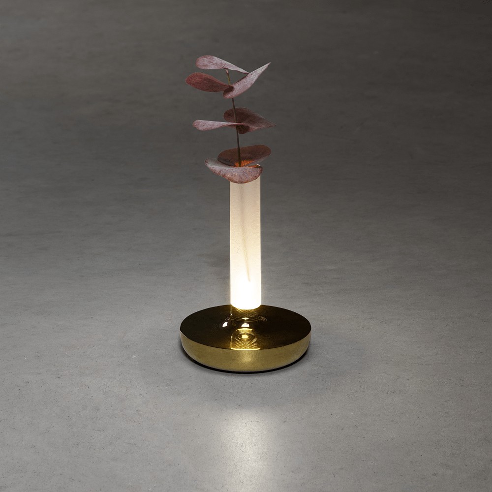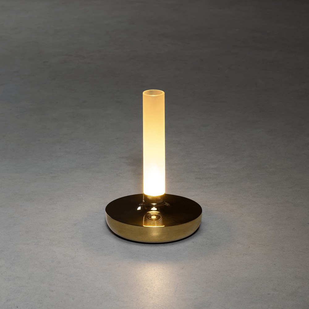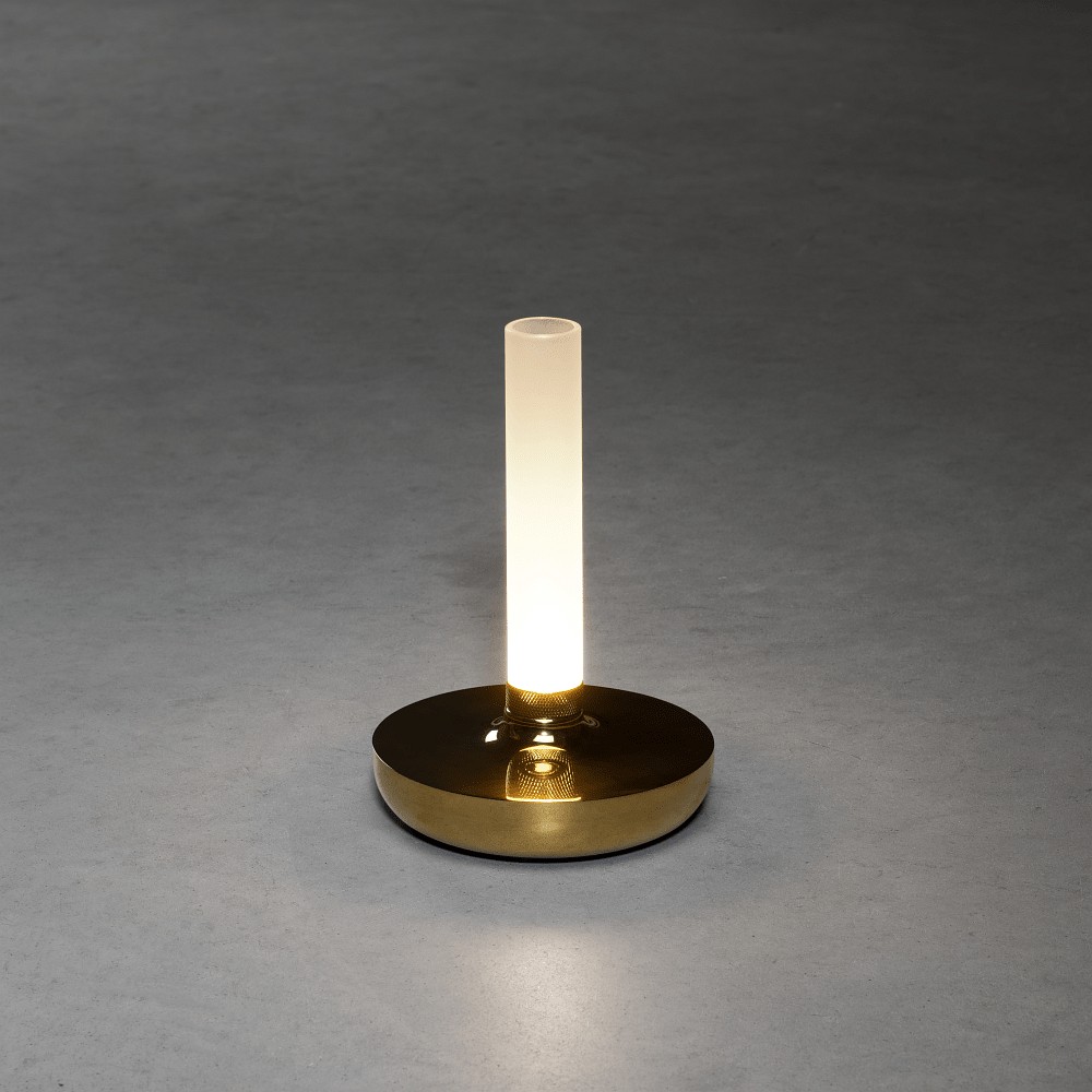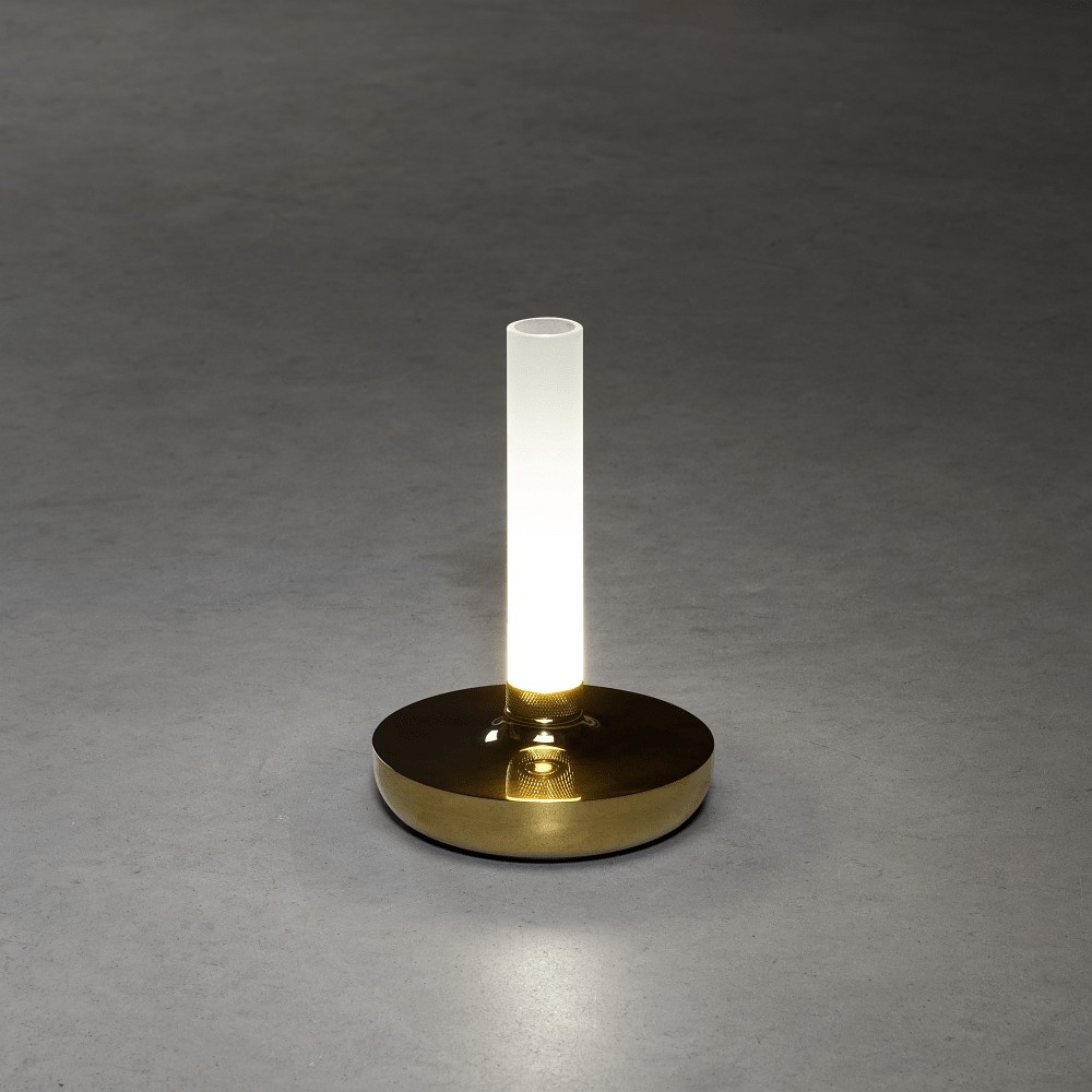 battery table lamp BIARRITZ IP54, gold dimmable