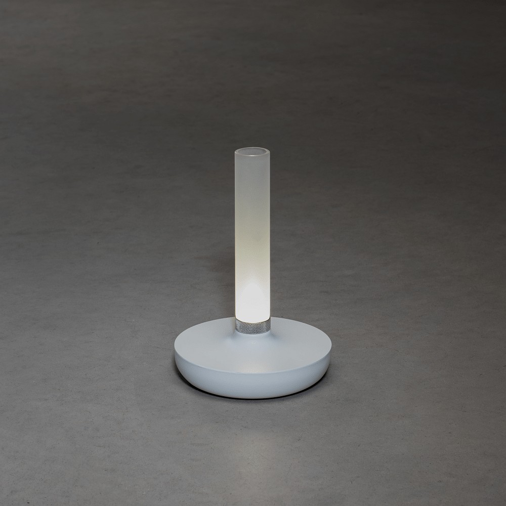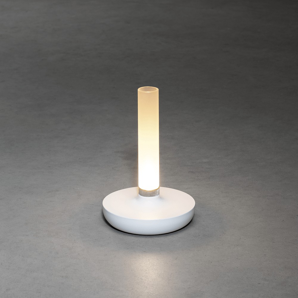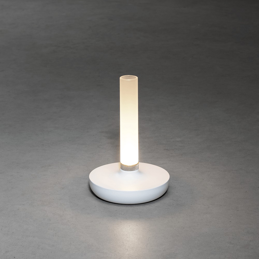 With its modern design in white and compact dimensions of 13.5 x 20.5 x 13.5 cm, the battery table lamp fits perfectly on any table or side table. Whether in the living room, on the terrace, or in the garden - the LED Battery Table Lamp BIARRITZ provides a cozy lighting atmosphere everywhere.