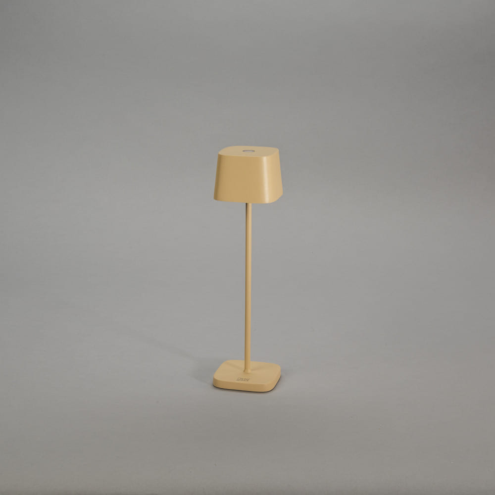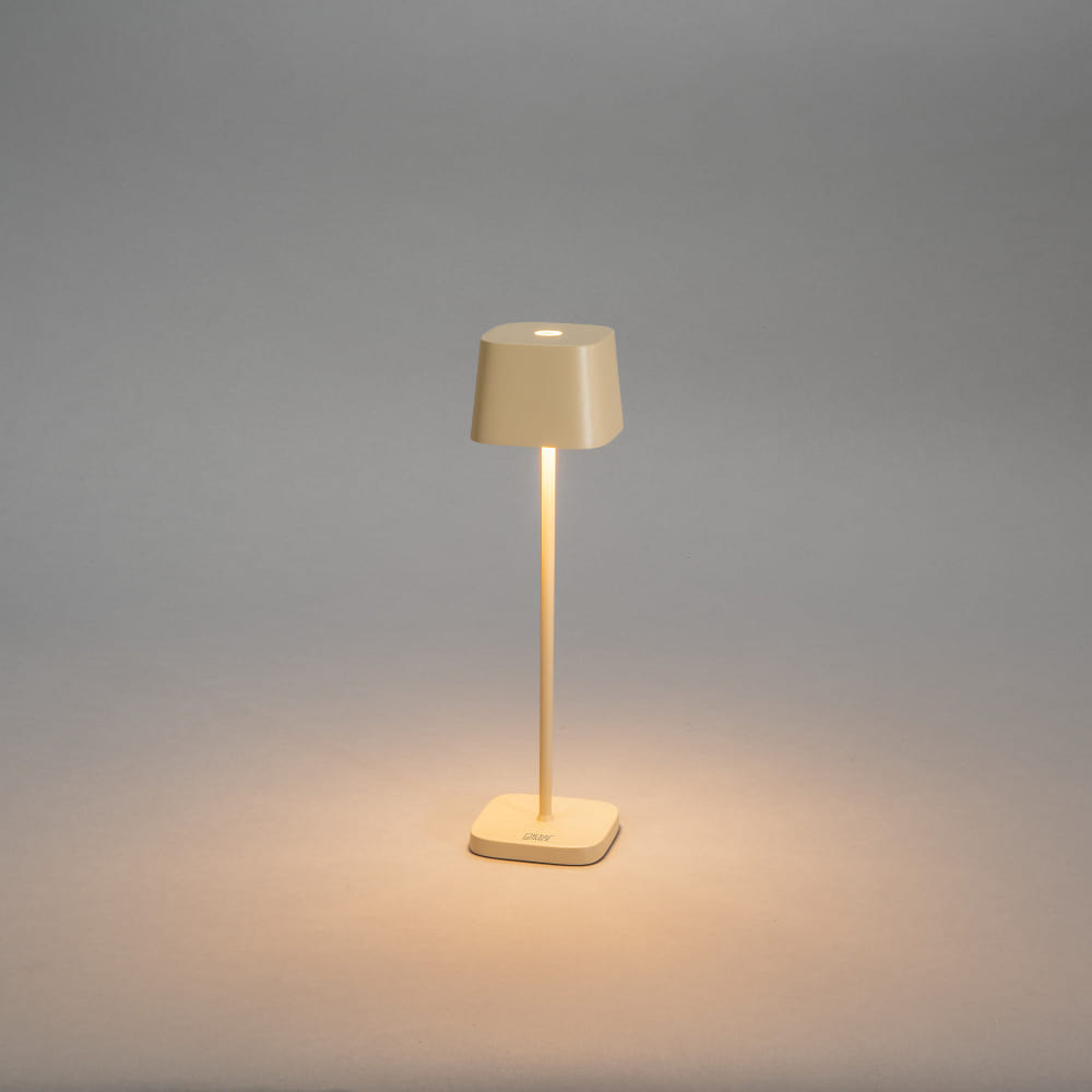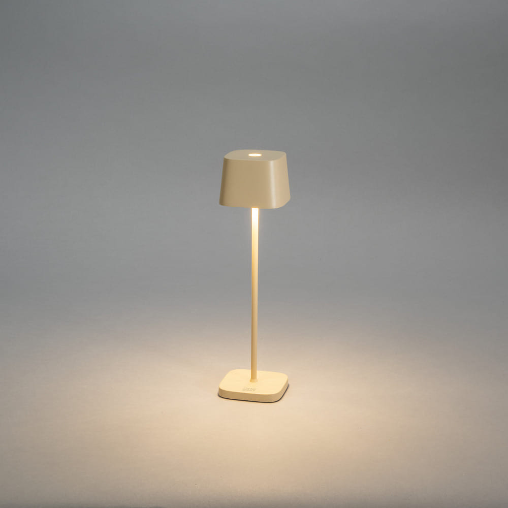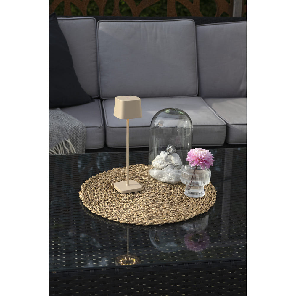 battery table lamp CAPRI MINI USB square IP54, sand coloured dimmable