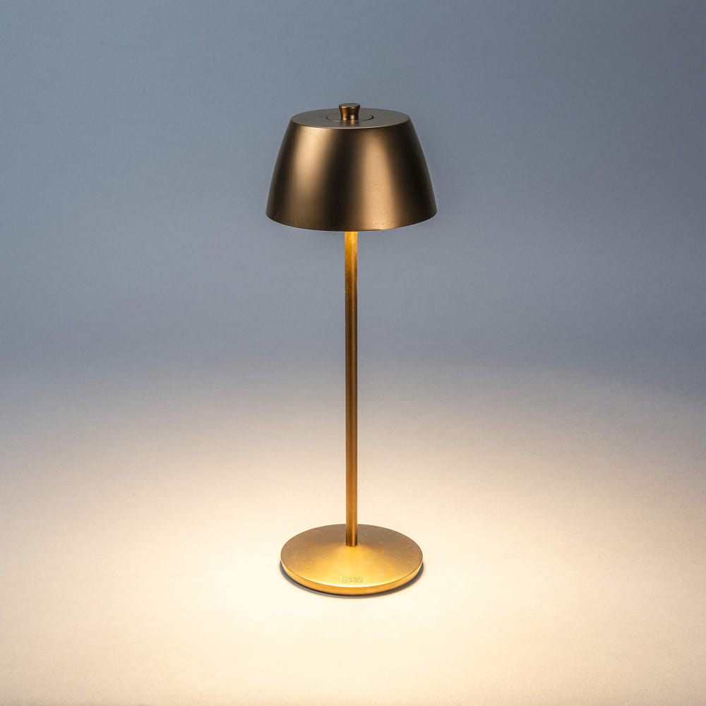 The LED table lamp is equipped with a powerful lithium-ion battery of type 18650 with 2x2200 mAh. The runtime is up to 9 hours at full brightness, and the charging time is only 6 hours. The table lamp comes with a charging station and USB charging cable.