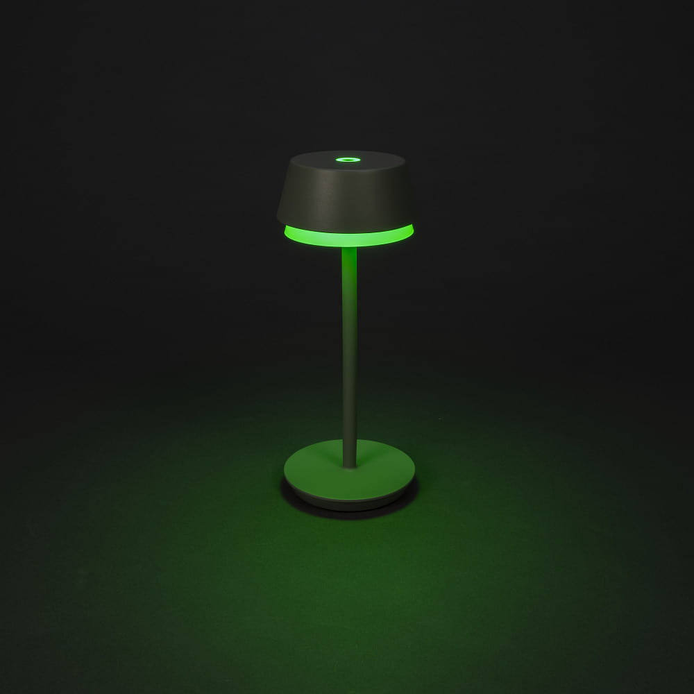 battery table lamp LYON with USB connection, CCT Switch, RGB, with touch dimmer IP54, green, grey dimmable