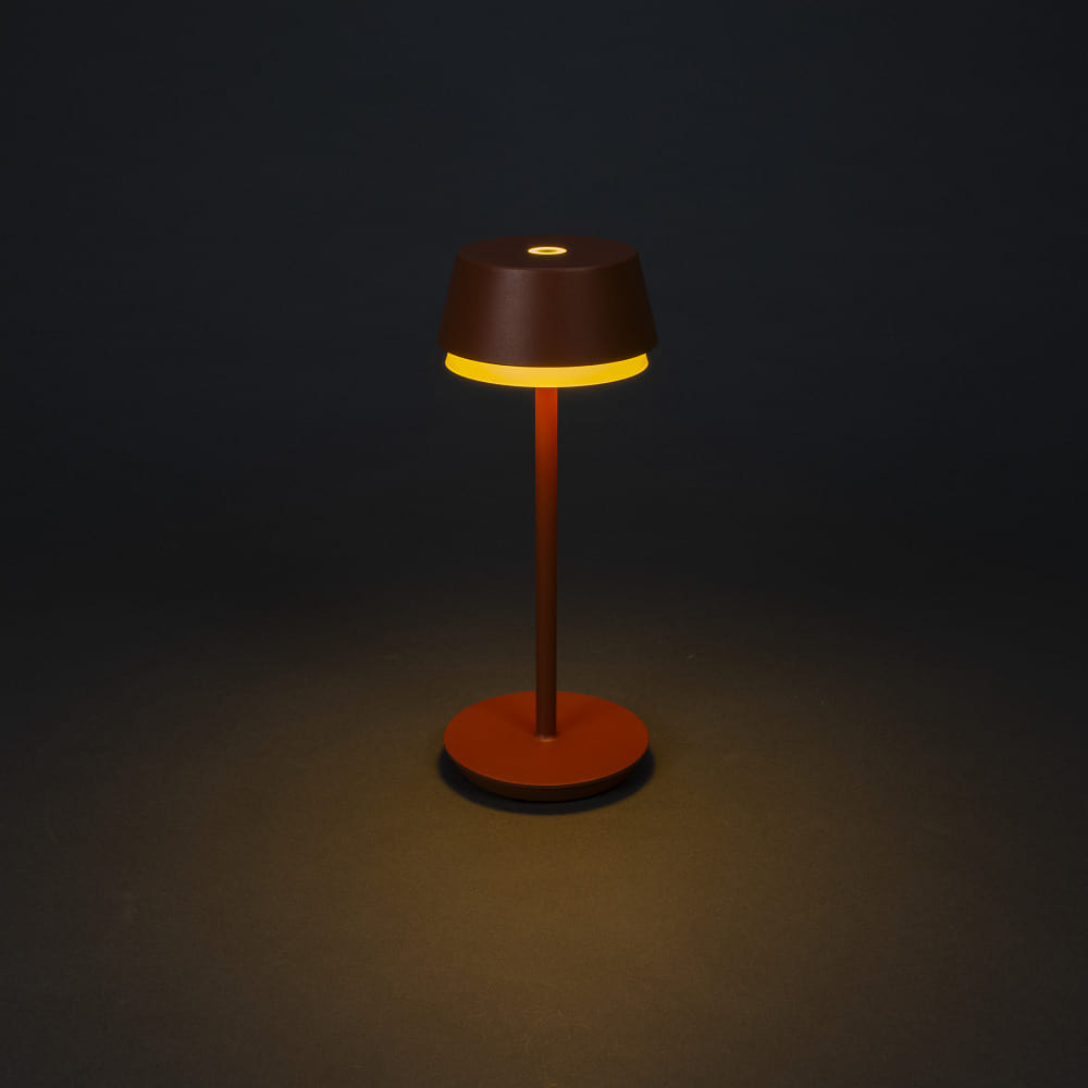 battery table lamp LYON with USB connection, CCT Switch, RGB, with touch dimmer IP54, terracotta dimmable