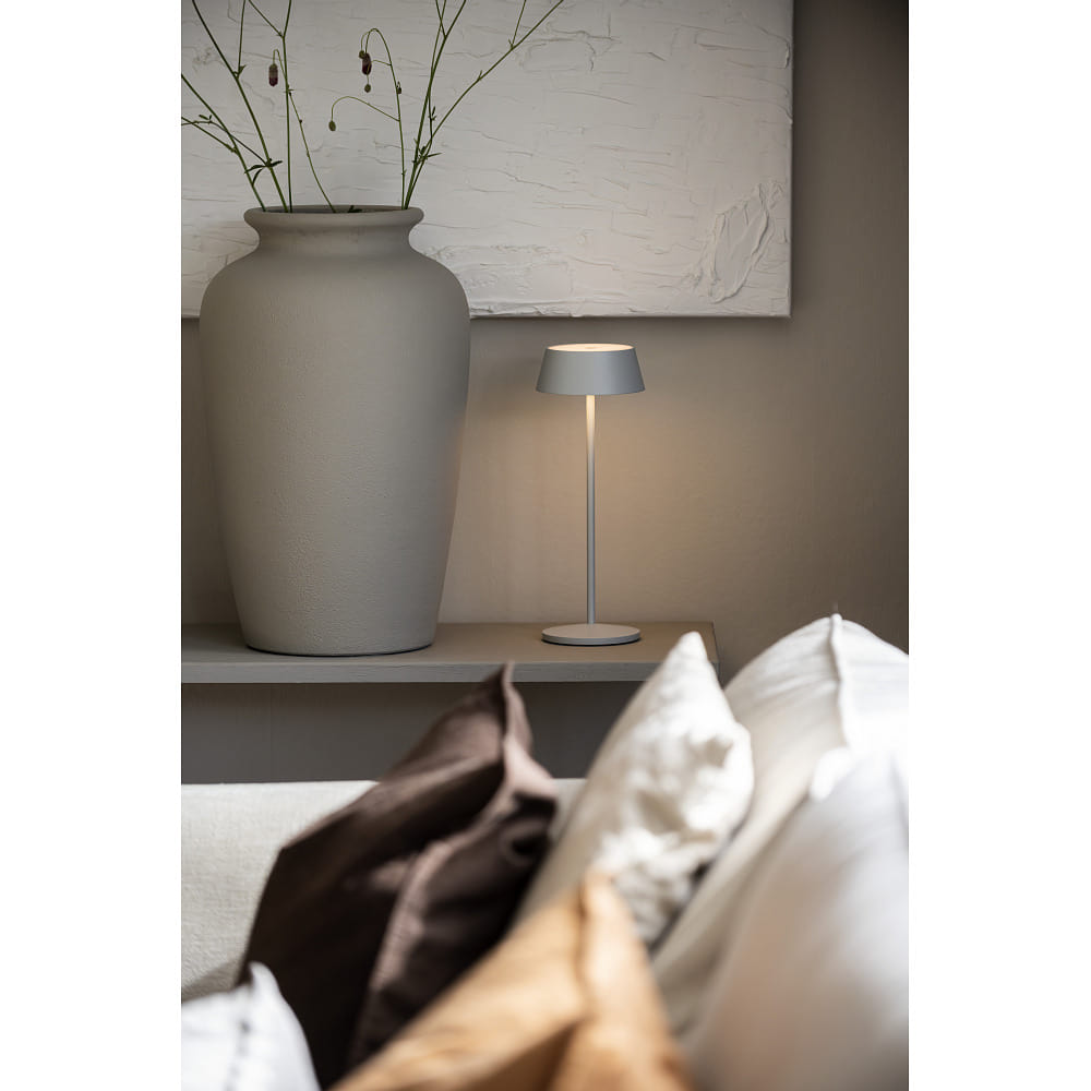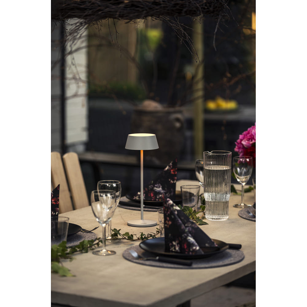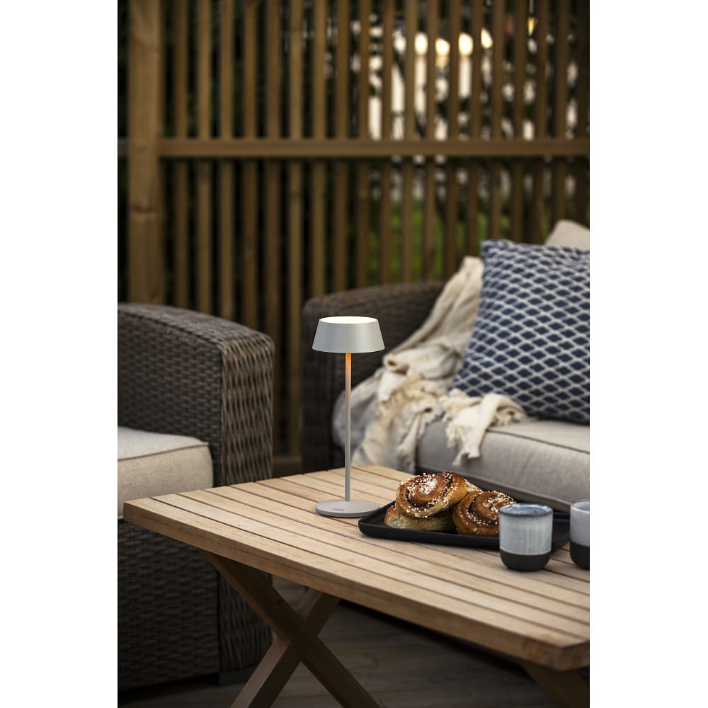 battery table lamp MENTON USB IP54, grey, lacquered dimmable