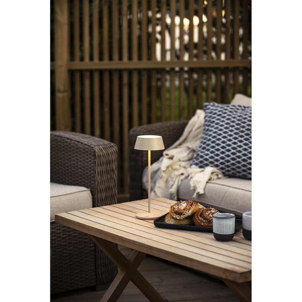 battery table lamp MENTON USB IP54, sand coloured, lacquered dimmable