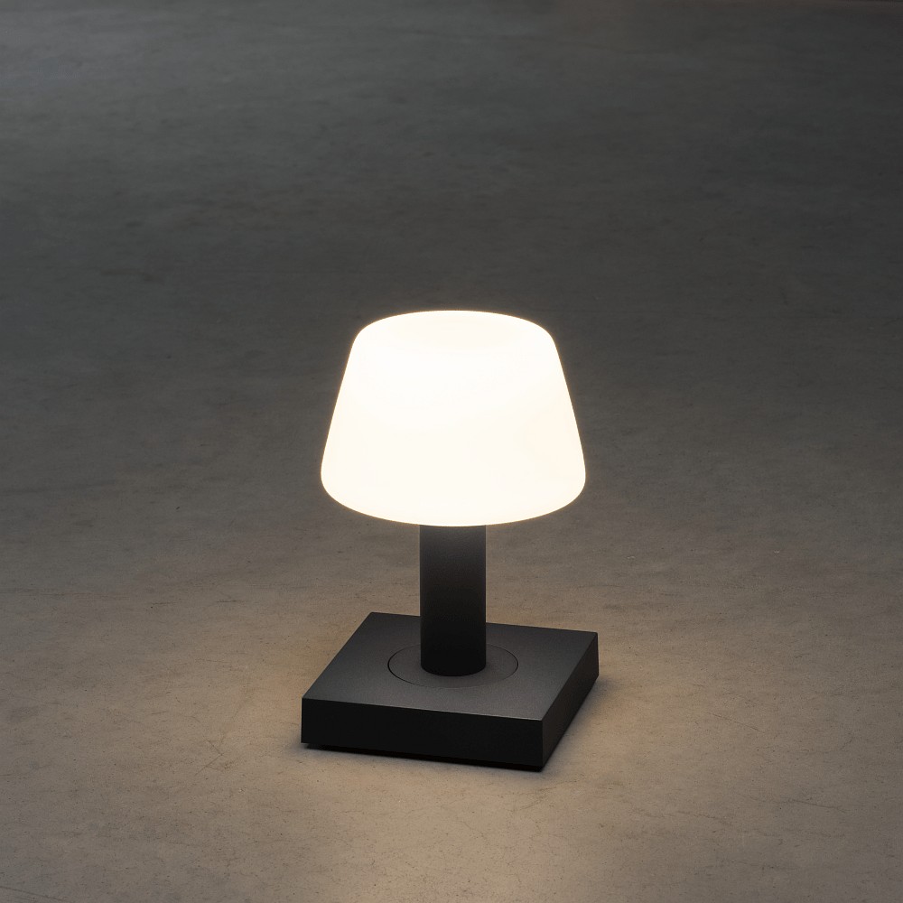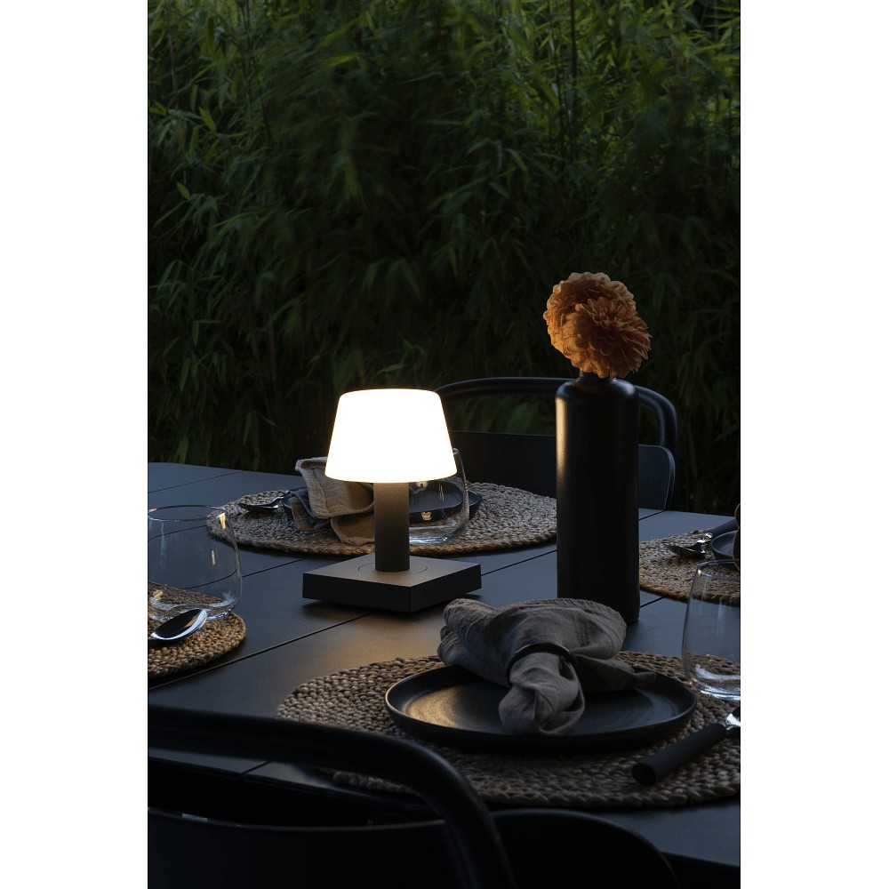 The LED Battery Table Lamp MONACO is a practical lighting element for furniture both indoors and outdoors. With a power consumption of 2.5W and a luminous flux of 10-114lm, it provides a pleasant lighting situation.
