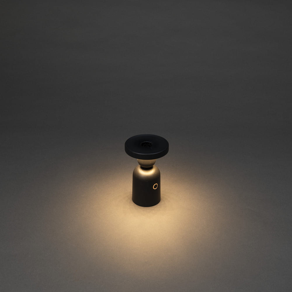 battery table lamp NANTES with USB connection, with touch dimmer IP54, black dimmable