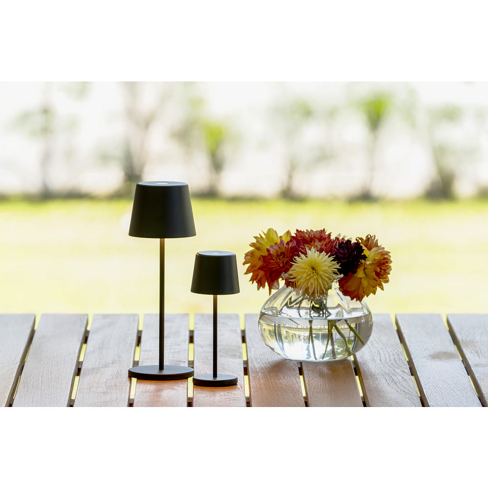 With an IP54 protection rating, the LED Battery Table Lamp VENCE MINI USB is also suitable for outdoor use. The compact design with dimensions of W/H/D: 8/21.5/8 cm allows the table lamp to be placed flexibly and space-savingly. The stable and non-slip base ensures a secure footing.
