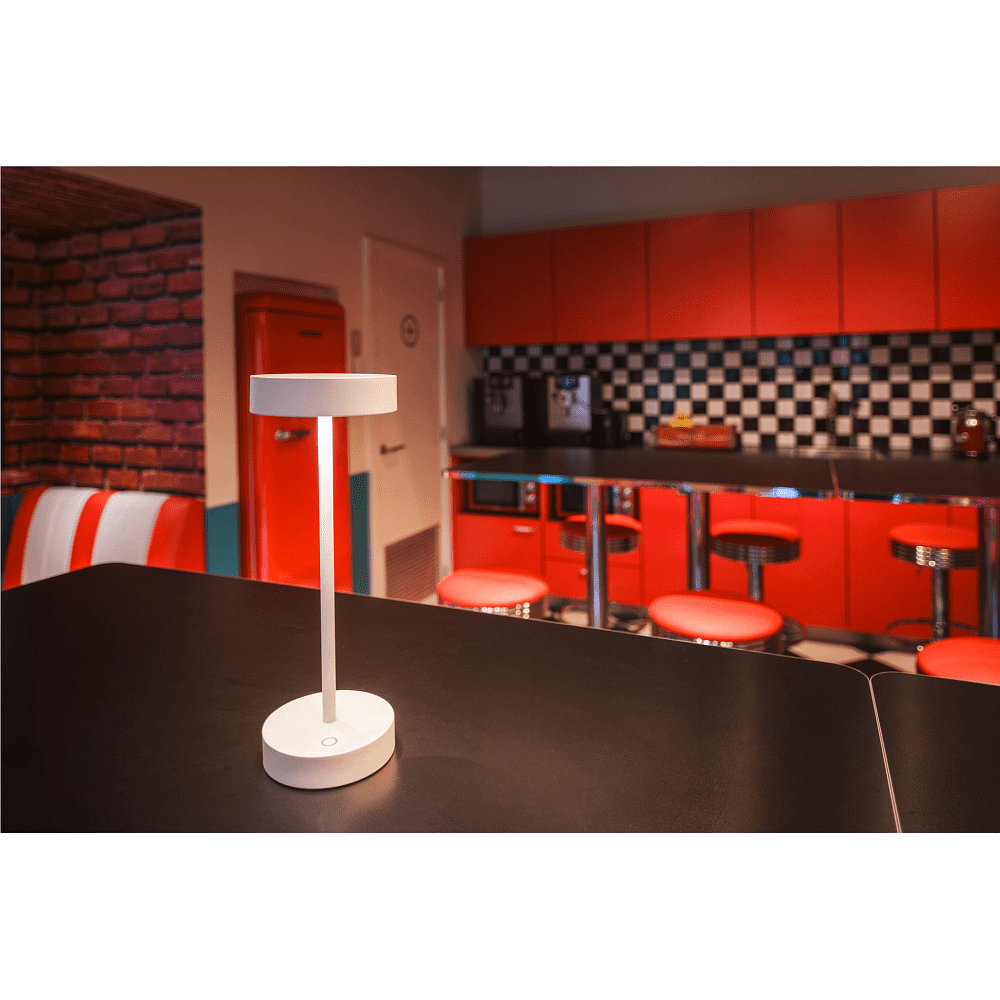 The VINOLINA table lamp is powered by a battery, offering maximum flexibility in placement. Whether on the table, on a shelf, or on the balcony - with this wireless lamp, you can provide pleasant light anywhere.