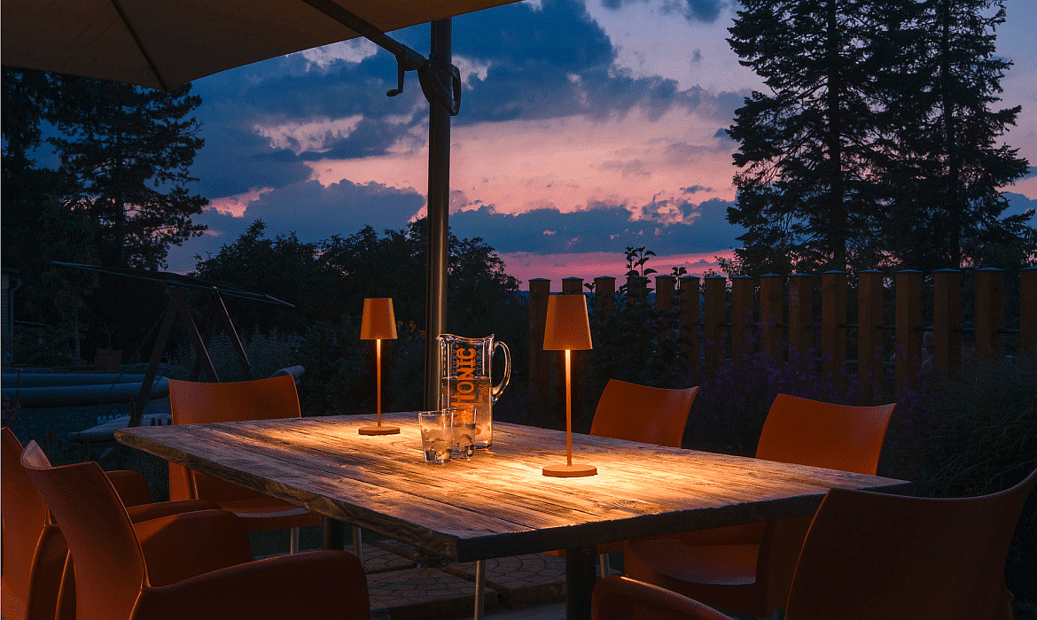 With the touch dimmer, you can adjust the brightness of the lamp according to your preferences. The IP65 protection rating ensures that the table lamp can be safely used outdoors without being damaged by dust or splashing water.