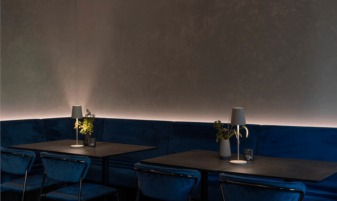 The touch dimmer allows you to easily adjust the brightness of the LED Battery Table Lamp VINOLINA TWO. Thanks to the integrated battery, it is wireless and can be flexibly placed wherever you need light. The average lamp lifespan of 30,000 hours guarantees long-lasting enjoyment of this high-quality table lamp.