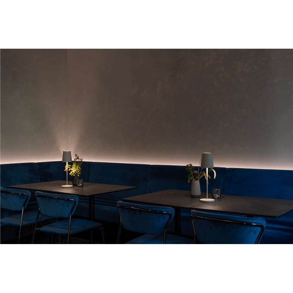 With a light output of 70lm/W, the LED Battery Table Lamp VINOLINA TWO is particularly energy-efficient and environmentally friendly. The included light source provides efficient lighting and helps reduce energy consumption. Discover the versatile applications of this modern and stylish table lamp from SLV.