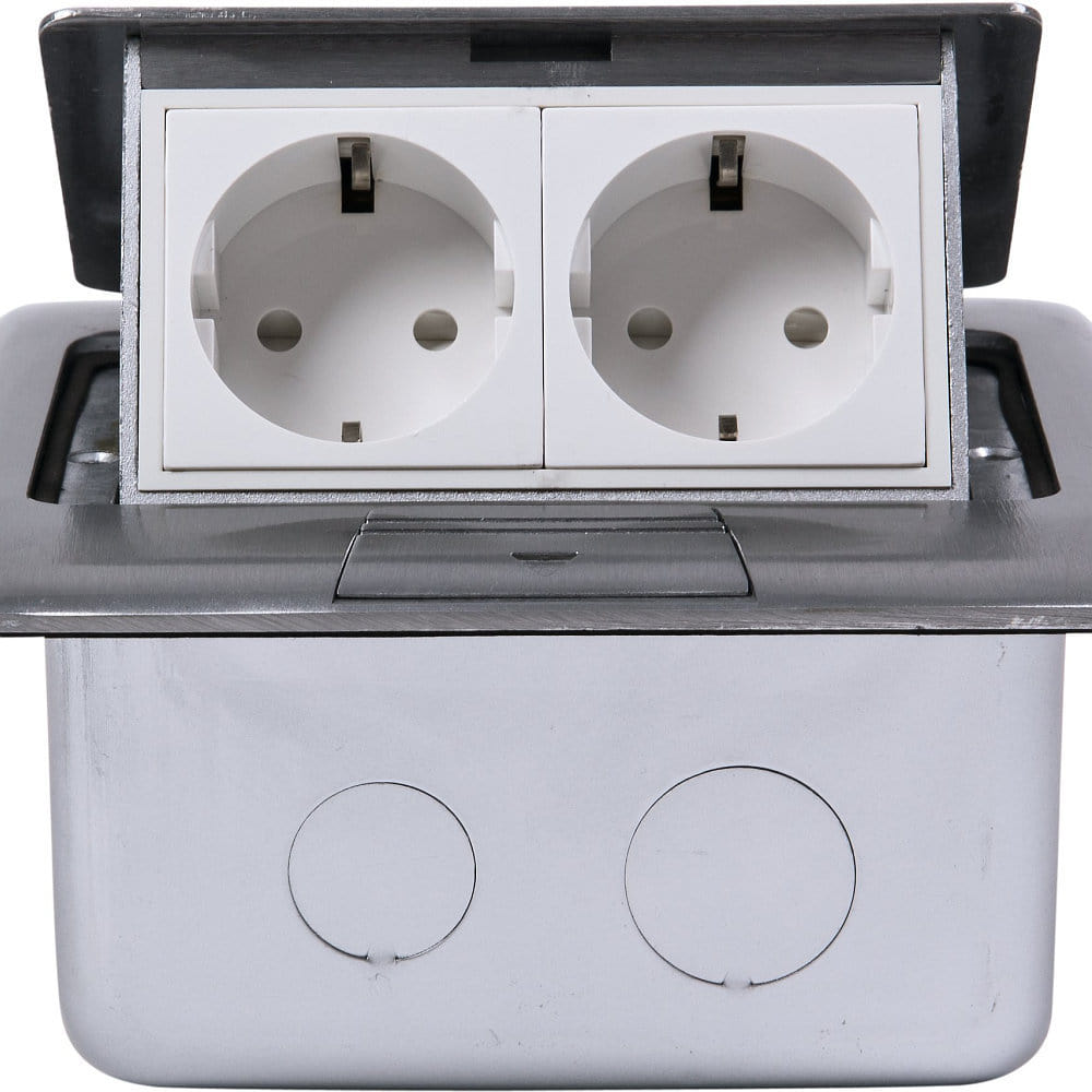 Bodensteckdose, IP20, 2-fach, mit Kinderschutz, 250V, max. 3680W