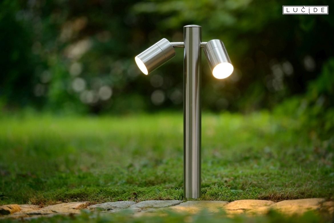bollard lamp ARNE LED 2 flames, round GU10 IP44, chrome matt