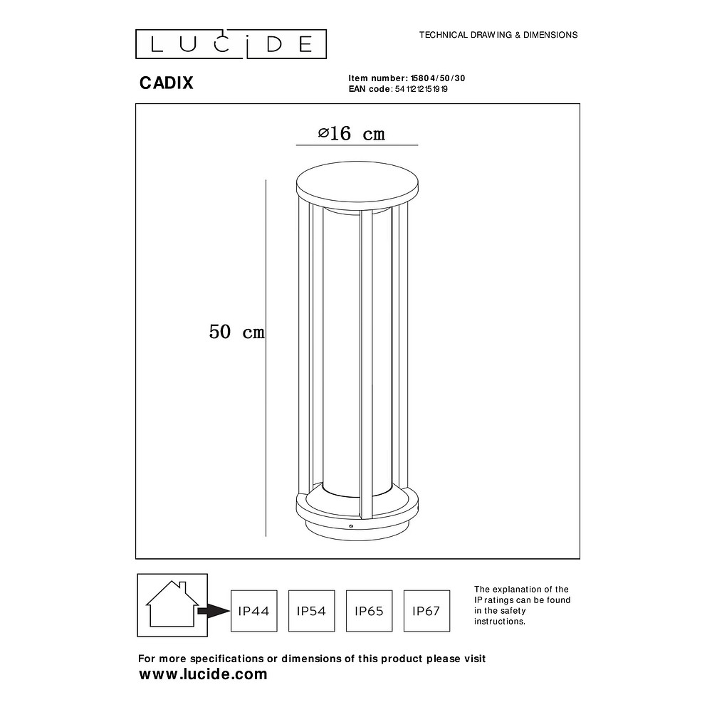 The light distribution of the CADIX bollard light is direct, allowing for targeted illumination. Thanks to the ground stake, the light can be placed along paths or driveways. It is perfect for lighting in the garden, on the terrace, or in the entrance area.