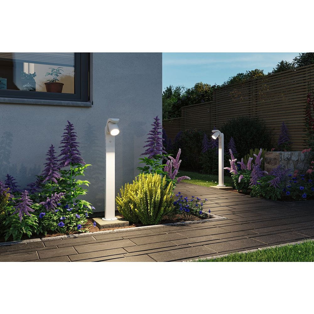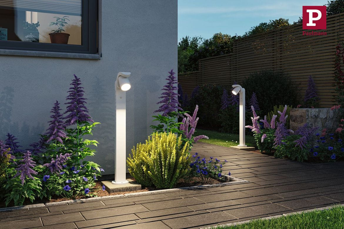 The LED Outdoor bollard light CUFF PIR is a high-quality product from the brand Paulmann, known for its reliable and durable lights. With its modern design in transparent and white, it blends harmoniously into any environment and provides stylish lighting in outdoor areas.