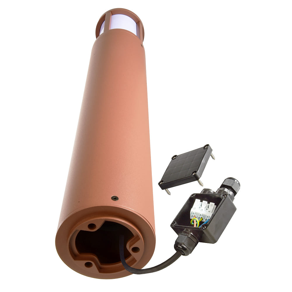 The bollard light comes with an IP67 connection box suitable for various sizes of underground cables. Mounting accessories are included, allowing for quick and uncomplicated installation. The possibility of daisy chaining allows for multiple lights to be installed in a row for even illumination.