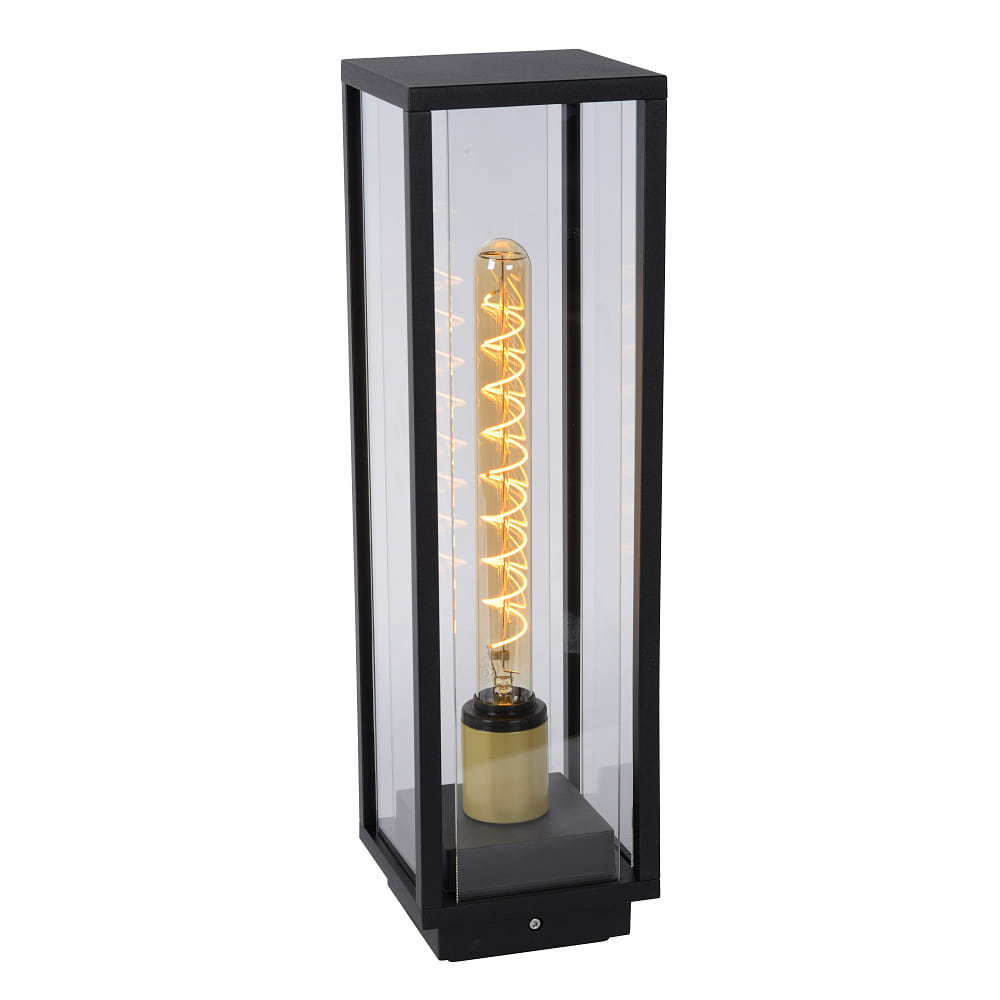 Outdoor bollard light LAURENS, E27, IP54, black / transparent
