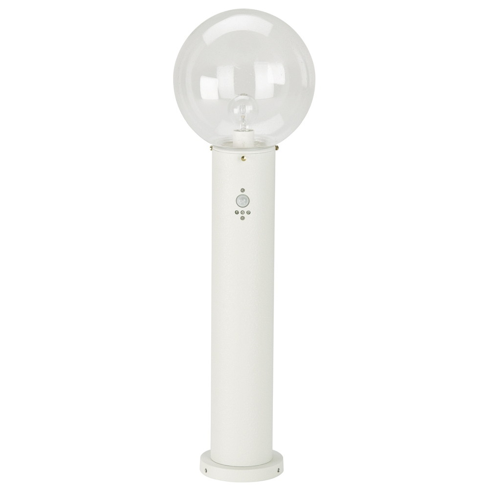 Bollard light Type No. 2012 with motion detector (Type 2010), with glass ball Ø 25cm, E27, white / clear glass