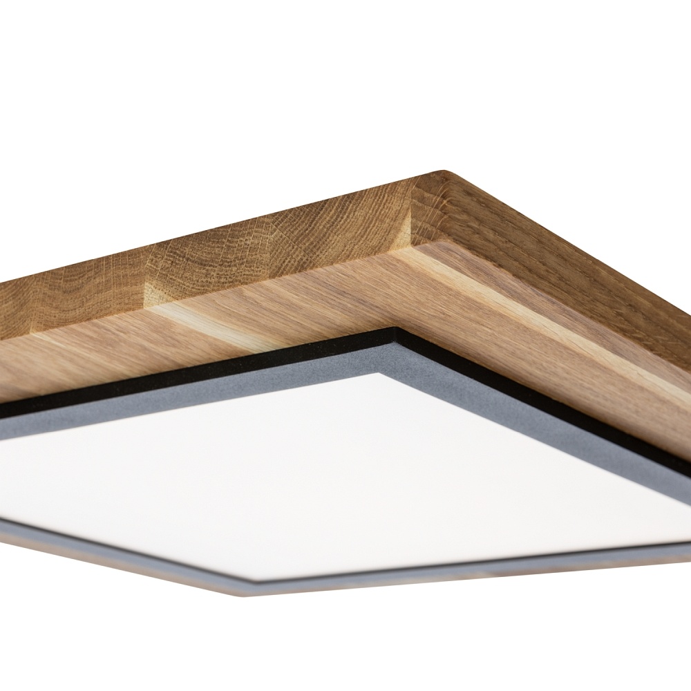 The Ceiling Light ARGENTINA Panel S impresses not only with its performance, but also with its appealing design. The housing made of oak wood gives the light a natural and warm appearance. With dimensions of L/W/H: 39/39/5 cm and a weight of 2kg, it fits perfectly in any room.