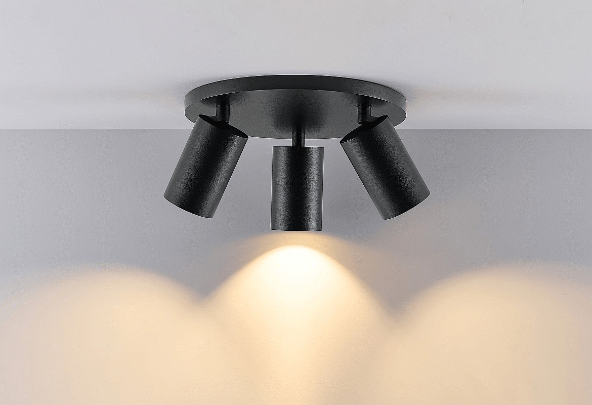 The luminaire uses three GU10 high-voltage reflector lamps with up to 7.5 watts power, which can be easily replaced. This allows brightness, light color, and color rendering to be adjusted according to personal preferences. Dimmability is also possible with suitable bulbs and accessories. This way, the light can be designed both functionally and atmospherically, ideal for different lighting moods.