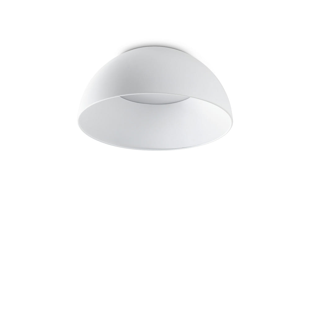 The ceiling light has a total diameter of 35 cm and a height of 16 cm. It has a beam angle of 100° and is suitable for indoor use. The metal frame is matt white painted and the light diffuser is made of satin opal polycarbonate.