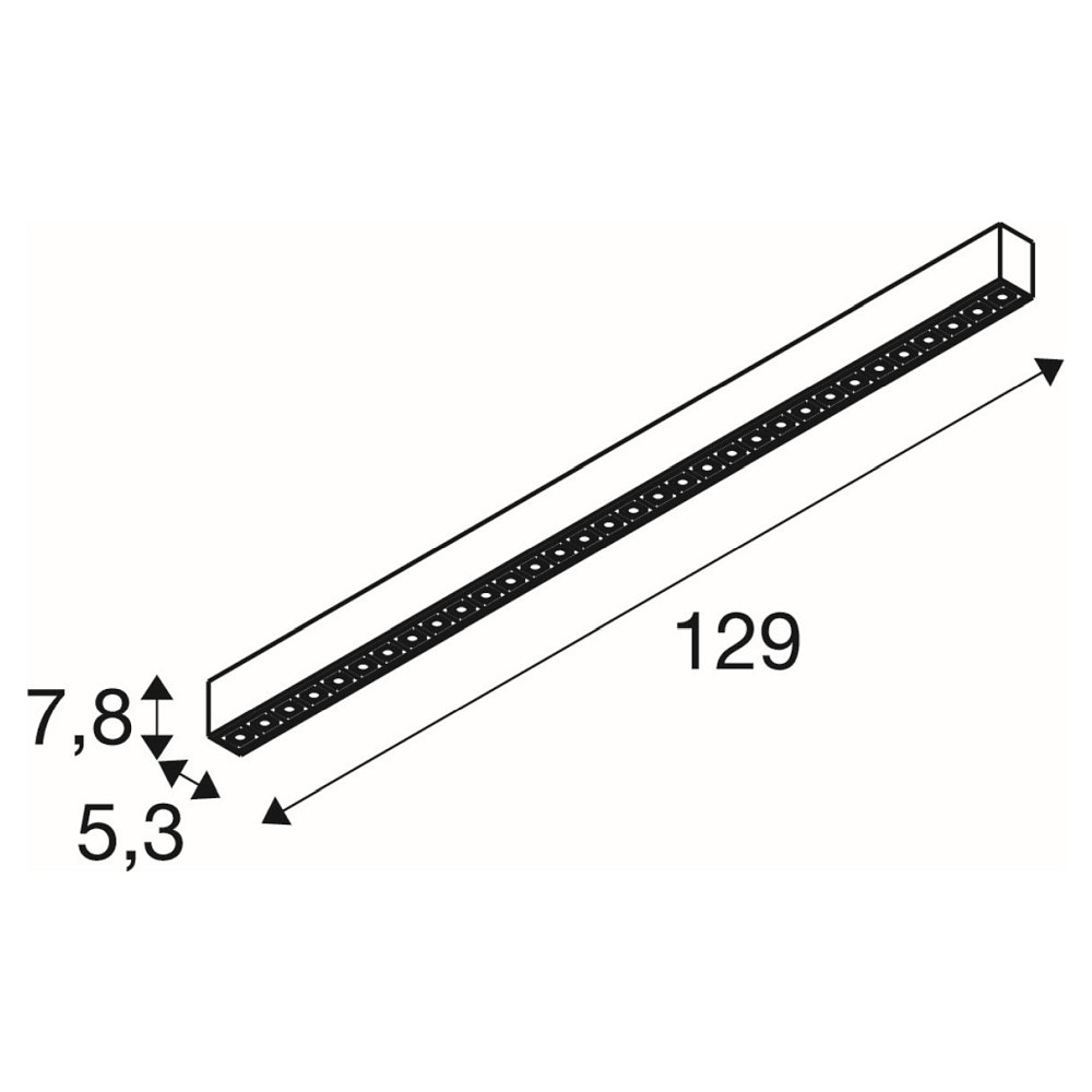 The GLENOS® PRO LED ceiling light from SLV impresses with its modern design and efficient performance. With a length of 120 cm and a slim profile measuring only 5.3 cm wide and 7.8 cm high, it blends unobtrusively into any room design. The luminaire features a single light source with a power consumption of 30 watts and produces a strong luminous flux of 3900 lumens. This ensures bright and pleasant illumination that meets even demanding requirements.