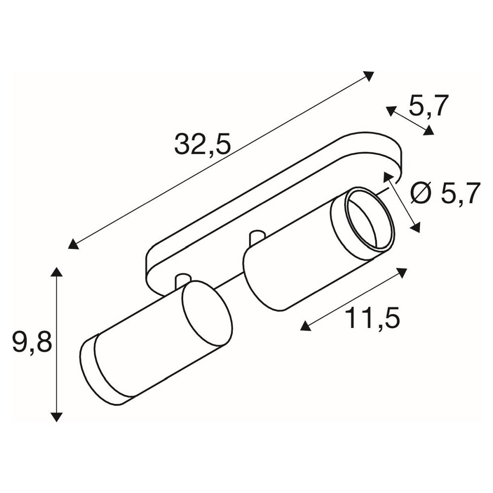 The ceiling light GRIP! L SPOT CL DOUBLE is a cylindrical luminaire with 2x GU10 sockets, operated with QPAR51 lamps. It has an IP20 protection rating and an IK02 impact resistance, making it ideal for use in various indoor spaces. This dimmable ceiling light is from the brand SLV and weighs only 0.552 kg.